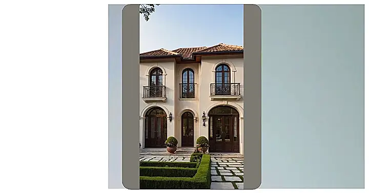 You hear “French cottage” and maybe you imagine a little place with a crooked chimney and a garden full of sunflowers, right? Well, this is like that, if that little place decided to hit the gym and eat its spinach. This “cottage” has more fancy archways and doors than a medieval castle, and those little balconies look perfect for practicing your royal wave or maybe just dramatically tossing rose petals onto the perfectly manicured pathway below. It’s less ‘cozy napping nook’ and more ‘where do I park my carriage?’