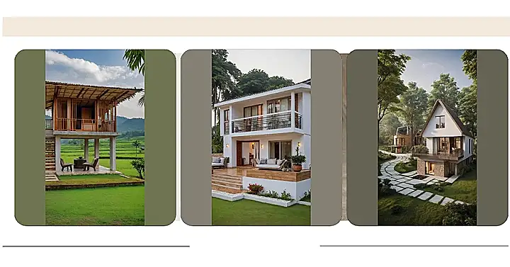 Check out these two awesome houses, looking like best friends or maybe even secret twins chilling in the jungle! You can almost hear them whispering about who has the better view of the super green hills behind them. Living here would definitely beat city life, with nature as your giant backyard. Just imagine waking up to birdsong instead of your alarm, and maybe having to share your breakfast with a friendly (or sneaky) local critter – talk about a lively village!