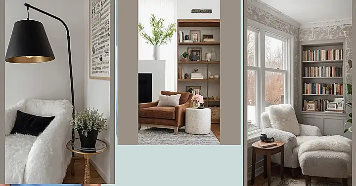 This cozy reading nook is basically giving us a big, fluffy hug just by looking at it! That armchair isn’t just comfy; it’s like sitting on a giant marshmallow, especially with the matching footrest for maximum sprawl. Forget about braving the chilly, bare trees outside your window; this spot is screaming for you to grab a warm drink and a good book. It’s the perfect fortress against homework and real-world responsibilities, ensuring you’re tucked away in ultimate comfort while the world outside does its thing.