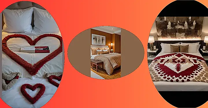 Whoa, someone’s trying to win some serious brownie points here! This bedroom setup is basically screaming “love is in the air” – or maybe just “fluffy hearts are on the bed.” We’ve got crisp white sheets looking all fancy, topped with a giant heart made of what looks like the softest, fluffiest material you’ve ever wanted to hug. Right in the middle, there’s even a little box, probably filled with goodies, proving that sometimes, the best way to say “I care” is with snacks. It’s definitely a step up from just leaving your socks on the floor, that’s for sure!