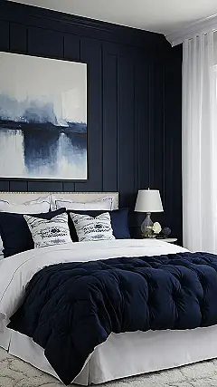 So, you want your dorm room to look this classy? Ditch the posters of cats playing poker and embrace the power of navy blue! This isn’t just a color, it’s a *vibe*. You’ll feel like you’re living in a fancy hotel room instead of a tiny space shared with a snoring roommate. Plus, dark colors hide stains, which is always a win when you’re living that ramen-noodle-powered college life!