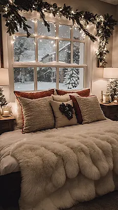 Winter is basically a giant ice cube trying to sneak into your house, right? This picture screams “Nope, winter, you’re not getting me!” with its super cozy vibes. Who needs to freeze outside when you can create a snug little corner like this? We’re talking plush white pillows that look like clouds, rich red ones that add a pop, and those soft blankets just waiting to wrap you up like a burrito. It’s the perfect spot to hibernate with a hot chocolate, avoiding all responsibilities until spring, or at least until your next class starts.