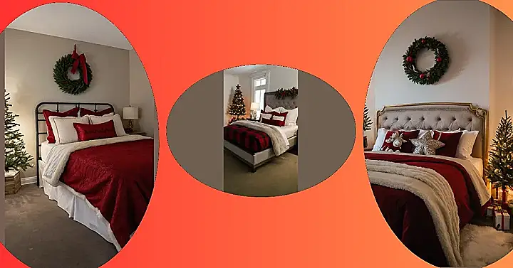**Paragraph 1:** Whoa, check out this bedroom! It’s like stepping into a Christmas card. That gorgeous red duvet looks warm enough to melt even the grumpiest Grinch’s heart. And the fluffy white trim? Pure luxury! The wreath above the bed is super festive, with a big, bold bow – way more stylish than the wonky one my little brother made last year. Even the tiny Christmas tree in the corner is getting in on the festive action! This room screams “Merry Christmas” without being overly flashy – it’s festive chic!