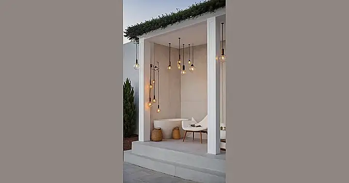 This ultimate escape pod, complete with a sleek tub and super comfy-looking chair, is practically begging you to ditch all your responsibilities for a while. Imagine sinking into a warm bath or just sprawling out with a book, all bathed in that golden light. It’s like these December outdoor lights are whispering, “Come on, relax, the world can wait.” This isn’t just about looking good; it’s about creating a personal retreat where you can forget it’s winter and just soak up some seriously cool vibes, maybe even pretending you’re on a tropical vacation instead of just a few steps from your back door.