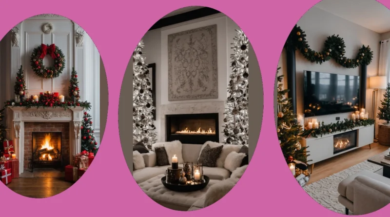 Step right up to the most Instagram-ready spot in the Christmas living room! This mantelpiece isn’t just decorated; it’s practically throwing a silent, elegant party. Look at those little frosted trees, standing tall like a fancy winter forest, probably whispering secrets about who’s getting the best presents this year. And the candles? They’re all lined up, flickering away, probably competing for the “most glow-up” award. You can almost hear them humming festive tunes while making the whole room feel super cozy.