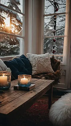 The candles, the soft blankets, and the snowy view create a peaceful atmosphere that’s perfect for kicking back and forgetting about the stresses of everyday life. It’s all about embracing the beauty of winter and creating a space that’s warm and inviting, just like a big hug on a chilly day. Now, doesn’t that sound amazing?