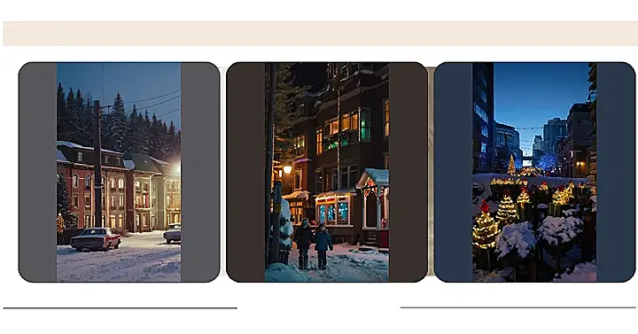 This picture perfectly captures the magic of a Canadian Christmas. It’s a scene straight out of a holiday movie—one where everyone’s wearing warm scarves, sipping hot chocolate, and maybe even building a snowman or two! Those Christmas lights aren’t just pretty; they’re like tiny beacons of holiday cheer, guiding everyone home to warm fireplaces and festive feasts. It’s a reminder that even in the cold, Canadian winters, the spirit of Christmas is warm, bright, and utterly delightful!