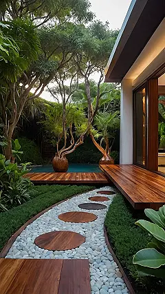 Think of this garden as the chill cousin of your grandma’s flowerbeds. Instead of a wild explosion of colors and plants everywhere, this design is all about simple shapes and clean lines. One cool tree-like plant, some water features, and BAM! Instant relaxation. It’s like a spa day for your eyeballs, and the best part? You won’t spend your weekends sweating and weeding.