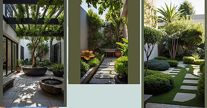 You know those days when your brain feels like it’s been through a blender and you just need a break? Well, picture this green escape! It’s like someone airlifted a mini slice of Italy and dropped it right here, complete with a cool pergola dripping with leaves acting like nature’s best sunshade. There’s a serious-looking tree chilling in a giant pot that looks like it could be a modern art sculpture, just soaking up the sunbeams dappled across the stones. It feels super peaceful, the kind of place you could actually finish reading a book without getting distracted, or at least pretend to while scrolling your phone in style.