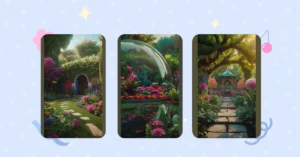 Look at all those plants having a leafy rave! Some are tall and dramatic like they’re auditioning for a play, and others are small and bushy, probably gossiping about the big ones. There’s even a little bench that looks perfect for plotting world domination or just eating a snack without anyone seeing. The path is like a walkway of giant cookies, leading you deeper into this green escape where the only thing you have to worry about is which plant smells the nicest.