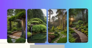 Walking through this garden is like getting a VIP pass to nature, but for introverts who prefer smaller crowds – specifically, a crowd of really happy plants! It’s proof that you don’t need acres of land to have a jungle adventure; just a really clever design and maybe a few plant whisperers. Those neat stepping stones, all lined with smooth pebbles, make you feel like you’re on a secret mission to find the best spot for a quick selfie, without ever having to worry about getting lost. The ferns are practically high-fiving you as you pass, saying, “Welcome to our cozy green kingdom!”
