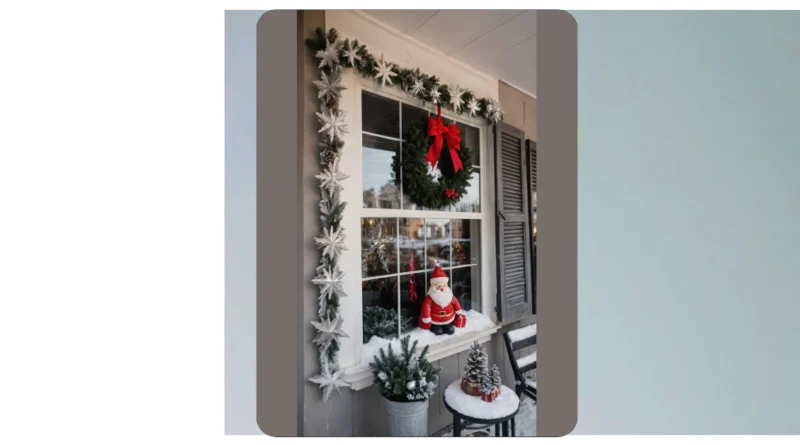 You know it’s officially the holiday season when even the windows start dressing up better than you do for school picture day! This window isn’t just decorated; it’s practically throwing a full-blown Christmas party. With those super sparkly snowflake garlands framing everything and a wreath so perfectly round it probably went to a fancy wreath academy, this window is giving off major “come hither and feel festive” vibes. It’s like the house itself is beaming with holiday spirit, making every passerby want to grab a mug of hot cocoa and just chill.