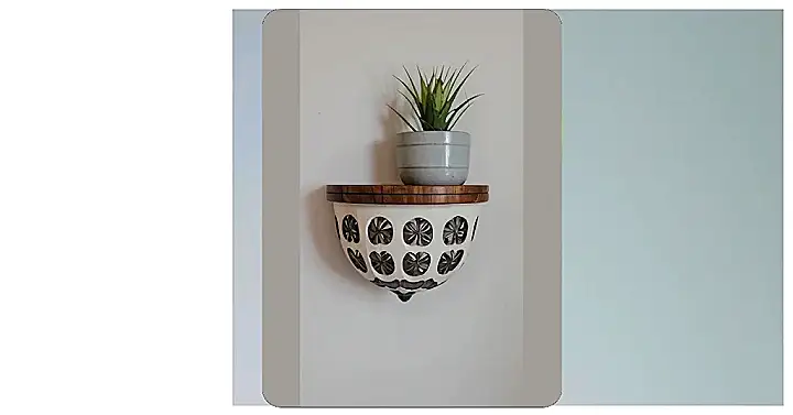 Check out this super cool, wooden shelf! It’s not your grandma’s dusty old thing; this beauty is carved with a bunch of funky little flower designs. Imagine all the possibilities! You could put your favorite succulent (like the one in the picture!) on it, some tiny books, or even your prized collection of sparkly rocks. It’s like a mini-display case, but way more stylish! It would totally level up your bedroom or bathroom.