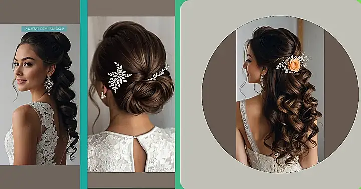 Want to ditch the straight and boring look for your big day? This updo is like a fancy bun that went to finishing school and learned how to sparkle! It’s perfect if you’ve got naturally curly or wavy hair because it works with your texture, not against it. Just imagine your curls all twirled and pinned up in a classy, elegant way, and then blinged out with some awesome hair accessories.