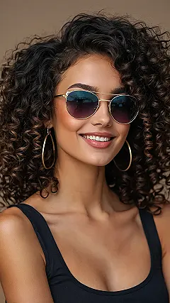 Those natural curly bangs might have their own agenda some mornings, doing their own bouncy dance moves, but when they frame your face just right, like hers do, it’s pure magic. Plus, wearing sunglasses with this look? It’s like saying, “Yep, I’m this awesome, deal with it!” It shows how embracing your natural texture and adding a little fringe can make you look instantly ready for anything, whether it’s crushing your goals or just looking effortlessly stylish while you smile.