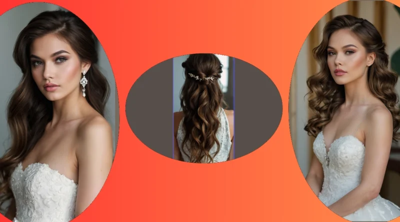 This hairstyle is totally #hairgoals. It’s the kind of look that makes you feel like a princess without being too fussy or over-the-top. The curls are soft and romantic, but the half-up style keeps it modern and chic. Plus, that delicate hairpiece adds just the right amount of sparkle without stealing the show from your amazing locks. This bridal hairstyle is picture-perfect, and you would look absolutely breathtaking on your special day!