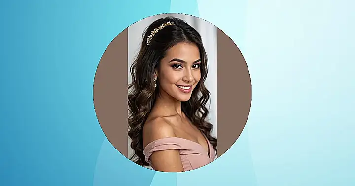 And what’s the secret ingredient to making these waves extra special? That dazzling hair accessory, of course! It’s like a tiny crown, tucked perfectly into her hair, ready to catch every bit of light and probably distract people from how perfectly she did her homework. This whole look, from the beautiful waves to that sparkle, is basically telling the world, “I’m here to shine, and yes, my hair is having a better day than yours!”