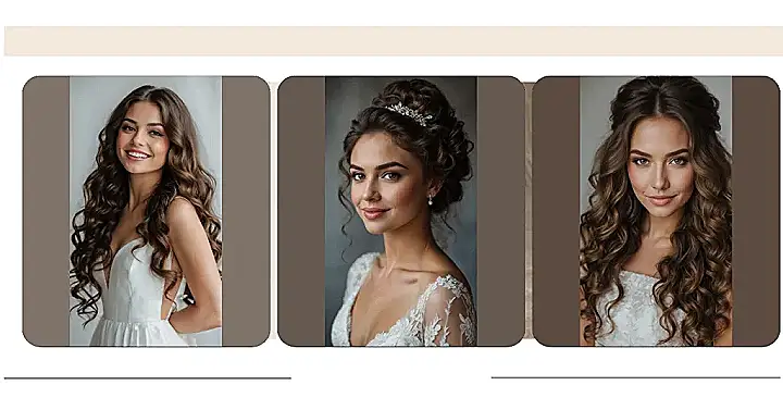 Let’s start off with two crowd-pleasers: the half up, half down style and the classic down look. Both styles allow your curls to bounce and shine—in all their glorious volume! Verily, who can resist the charm of a low bun interspersed with soft curls? Each option is not only flattering but also a great way to incorporate accessories like a chic tiara or blooming flowers.
