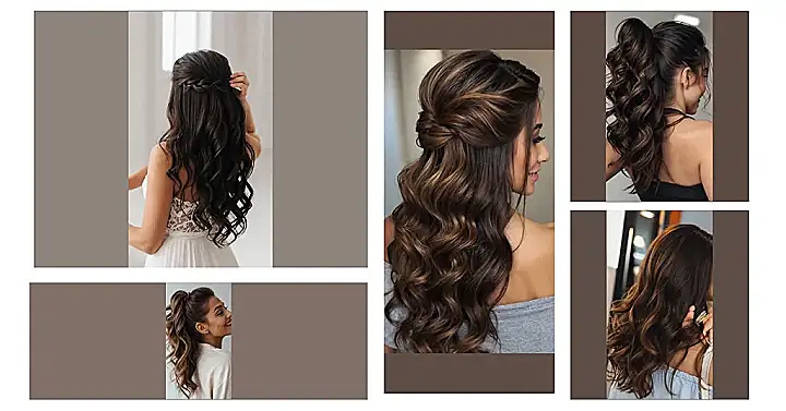 This hairstyle is like the perfect mix of “I’m ready for anything” and “I’m still chillin’.” Imagine you’re getting ready for a fancy dinner, but you also want to look like you just rolled out of bed (in a good way, of course!). This half-up, half-down style is perfect for that! It’s got that effortless, wavy look that’s easy to manage, but it also has a little something extra with the twist at the top, so you don’t look like you just woke up.