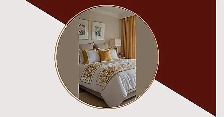 Stepping into this bedroom might make you wonder if you’ve stumbled into a fancy hotel or a secret royal hideout. With that incredibly plush bed, the stacks of golden and white pillows, and the cool gold patterns on the duvet, it looks like the ultimate spot for a serious snooze. You could probably sink right into that comfy setup and disappear from the world for a bit, only resurfacing for pizza. This room just screams ‘cozy luxury’ louder than your best friend on a sugar rush.