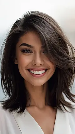 When showing your stylist a photo, point out the specific details you love — the layer length, the face-framing angle, or the volume at the crown.