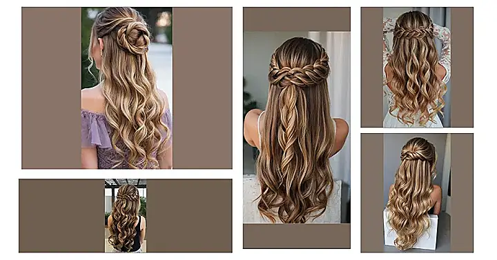 Ready to elevate your prom look with a touch of chic? Step up your hair game this prom season with a stunning half-up half-down hairstyle that exudes elegance and style. Perfect for those wanting to strike a balance between sophistication and playful charm, this versatile hairdo is a timeless choice that complements any prom outfit effortlessly. Whether you opt for loose curls cascading down your back or sleek strands framing your face, a half-up half-down look effortlessly combines the best of both worlds, creating a dreamy and romantic vibe that will have heads turning all night long.