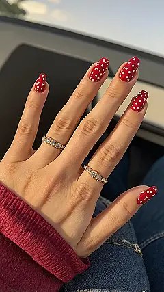 Who knew a bunch of little dots could look so incredibly cool? These aren’t just any nails; they’re tiny canvases of pure fun! With their vibrant red base and perfectly placed white polka dots, they totally scream ‘main character energy.’ You might even feel like Minnie Mouse’s chic, modern cousin with these beauties, ready to conquer any cartoon-worthy adventure or just rock your school hallway with a killer manicure. These polka dot nails are definitely not shy, and we love that!