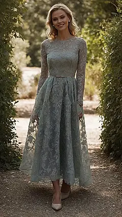 Finding the perfect wedding guest outfit can feel like trying to solve a Rubik’s Cube while blindfolded – you want to look amazing, but definitely not like you’re trying to outshine the bride (unless you secretly are, we won’t tell!). Luckily, this lovely lady in the soft blue lace dress has absolutely crushed it. That delicate floral pattern and elegant midi length scream ‘I’m here to celebrate love and maybe snag a piece of cake without tripping over my own feet,’ which is pretty much the ideal vibe for any wedding party.