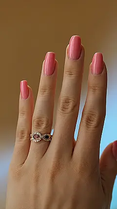 But wait, there’s more! Peeking out from the finger is this super cool ring, adding a little extra sparkle to an already vibrant hand. It’s like these nails decided to bring their own party guest – a fancy ring that’s totally down for sunny picnics or maybe even just a chill backyard BBQ. So, next time you’re debating your summer style, just remember: a little pink, a little bling, and your hands are officially ready to ace the summer vibe check!