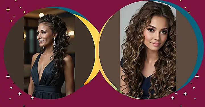 This hairstyle is like a fairytale come true—gorgeous, flowing curls that would make Rapunzel jealous! But instead of spending hours climbing towers, you can achieve this look with a little help from your hairstylist (or maybe a really, really good curling iron). The braided crown adds a touch of elegance, without being too stuffy. It’s the perfect mix of romantic and fun—ready to dance the night away!
