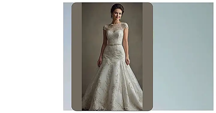 Imagine yourself walking down the aisle in this beauty, feeling like a princess (or maybe a very chic mermaid). The delicate lace and sheer panels give it a modern twist, making it a perfect mix of classic elegance and fun, youthful style. It’s the kind of dress that will make everyone gasp – and maybe even spontaneously start singing sea shanties! Who needs a prince charming when you’ve got a dress this stunning?