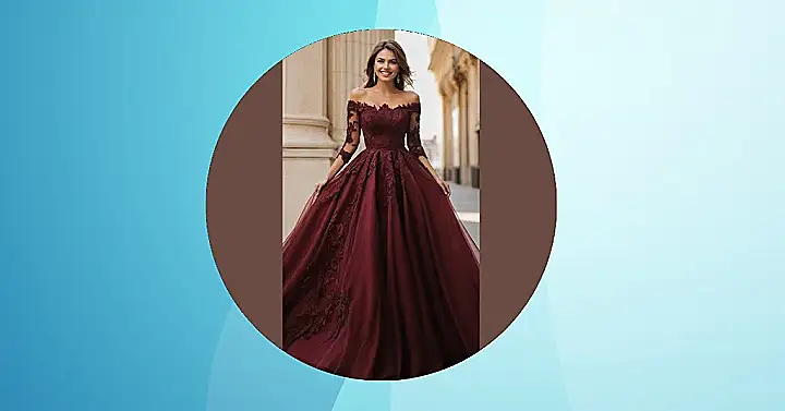 This isn’t just *an* evening long dress; it’s practically a red-carpet event waiting to happen, even if the only carpet you’re walking is your living room rug! That stunning off-the-shoulder neckline, paired with those intricate lace sleeves, basically screams “I’m here to slay… gracefully.” The rich, deep color makes you feel like you just stepped out of a fairy tale, ready to charm everyone without even trying. Seriously, try not to feel like royalty in this gown – it’s impossible!