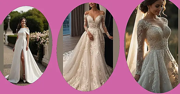 Looking at this super charming bridal dress is like getting a sneak peek into a real-life fairy tale, but way more stylish and totally walkable (maybe!). That lace detail? Seriously looks like someone hand-drew beautiful patterns all over it, and the off-the-shoulder part is just *chef’s kiss* perfection. It’s definitely the kind of dress that makes you feel instantly like the main character, ready to make an entrance or just pose dramatically for endless photos.