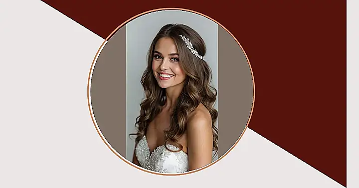 This gorgeous ‘do is basically ready to star in its own holiday movie! With those luscious waves flowing down and the top half perfectly twisted, it’s like a cozy blanket for your back – perfect for those chilly winter wedding vibes. And let’s not forget that dazzling, sparkly headpiece nestled right in there. It’s giving major ‘ice princess who just found her happily ever after’ vibes, without the actual ice, thankfully! We’re pretty sure even Elsa would be asking for a hair tutorial after seeing this masterpiece.
