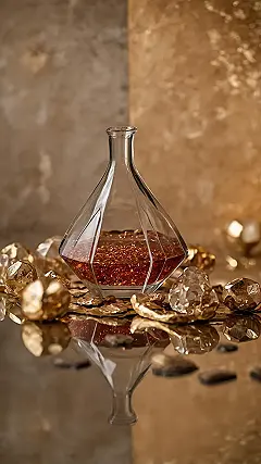 Tired of your room looking like every other room on the block? This incredible geometric bottle is here to save the day, making even the most boring bookshelf look like a millionaire’s secret stash. It’s filled with what looks like a super-sparkly, fiery potion, surrounded by little nuggets of gold – perfect for pretending you just discovered ancient treasure right next to your textbooks. Who needs a plain old vase when you can have this gleaming, mysterious centerpiece that practically screams “I’m fabulous, and I know it!”