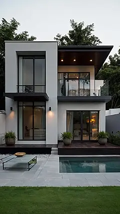 This modern house is like a super cool, stylish game of Tetris gone right! Forget those boring, cookie-cutter houses – this one’s all about clean lines, big windows perfect for showing off your epic gaming setup, and balconies just begging for a chill hangout spot. It’s not just a house; it’s a statement that says, “I’ve got great taste, and I probably know all the cheat codes.”