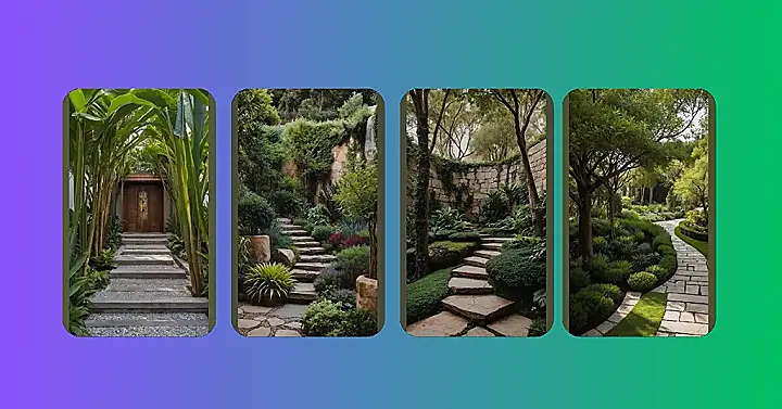 Look closer and you’ll see this isn’t just one big blob of green; it’s a whole cast of leafy characters! There are different textures and heights, from the smooth lawn to those perfectly manicured hedges and the chunky, low-growing ground cover. Those stepping stones look like they’re guiding you on a secret path, maybe to a hidden spot where you can read a book or just kick back. It totally shows that a garden doesn’t need to be bursting with bright, flashy flowers to be jaw-dropping. Sometimes, the most relaxing and coolest places are all about the beautiful greens and, of course, that sweet, sweet shade, letting you escape the sun’s paparazzi.