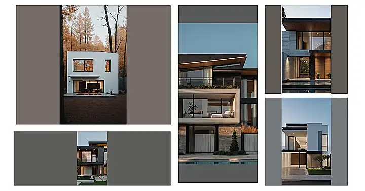 Imagine a house so sleek and simple, it practically whispers “Zen” to anyone who glances at it. This minimalist masterpiece, nestled amongst autumn’s fiery embrace, is the definition of “less is more.” It’s like a stylish white cube, all sharp angles and big windows, perfectly framed by the warm colors of the fall trees. Forget cluttered rooms; this place is about clean lines and open spaces, perfect for cozy nights in with your best friends or a super chill solo movie marathon. You wouldn’t need much to decorate, maybe a single plant or a cool poster and you are ready to go!
