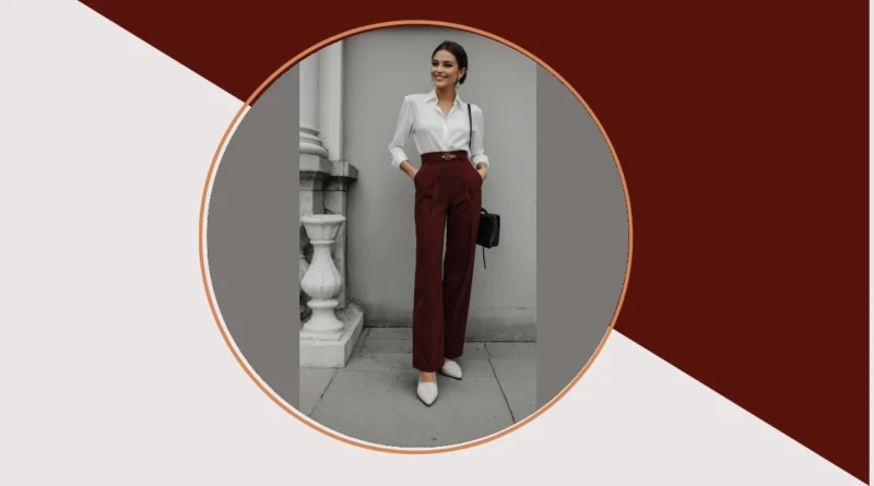 Looking at this outfit, you might think, “Wow, she looks like she’s ready to ace a presentation or maybe even run a whole company!” That crisp white shirt and those awesome maroon trousers are giving off serious “I’ve got this” vibes. It’s like when you try to look super grown-up for a school event, but she actually pulls it off with a smile that says, “Yeah, I look good, and I know it!” It just goes to show that trousers aren’t just for school uniforms or boring grown-up stuff; they can be totally stylish and make you feel like a total boss.