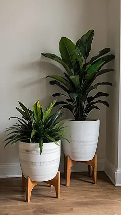 This plant pot is like the cool kid in the living room décor gang! It’s totally rocking that wooden look, like it just came straight out of a hipster lumberjack’s cabin. Forget those boring plastic pots, this is the type of stuff that makes your space look instantly more interesting. Plus, it probably impresses your houseguests more than your ability to binge-watch Netflix.