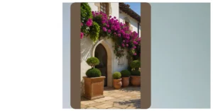 Imagine chilling here with a giant plate of pasta! This garden is straight out of a movie – those bright pink flowers are popping harder than bubble wrap, and the little potted trees look like they’re standing guard. It’s the perfect spot to escape from, well, anything!