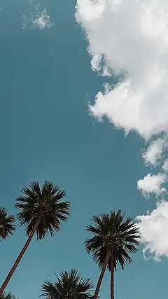 These palm trees seem pretty happy just hanging out under that cool blue sky with some fluffy clouds drifting by. They’re probably talking about important tree stuff, like whose fronds are the fanciest or how long they can stand still without falling over. Seeing a scene like this makes you feel instantly more relaxed, like you should be sipping something cold instead of scrolling endlessly. Wouldn’t it be awesome to capture that chill feeling and put it right on your phone?