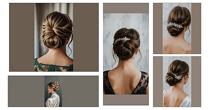 And check out that sparkle! The dazzling hair clip nestled in this beautiful updo is basically your hair’s personal bodyguard, making sure everyone knows who the star of the show is (besides you, of course!). It’s got just enough shimmer to catch the light without going full-on disco ball. Plus, the soft, romantic twists look so effortlessly chic, it’s like your hair decided to be fancy but also wanted to chill out and enjoy the party – no super-tight hair helmet vibes here, just pure elegance and comfort.