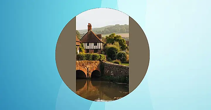 But hold on a second, the water looks a bit dark and mysterious. Maybe there’s a spooky legend about a lost treasure hidden under the bridge. Or maybe it’s just a peaceful spot to sit and think about all the fun things that happen in this delightful English village. Either way, it’s pretty obvious that this village is super cool and full of surprises!