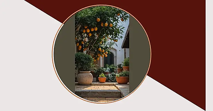 Looking at this sunny spot makes you feel like you’ve accidentally stumbled into a really cool Italian movie set, but way more comfortable. There are so many bright oranges hanging on that tree, they look like giant edible Christmas ornaments! It feels like the kind of place where you could just sit on those warm stone steps, maybe try to catch a falling orange (watch your head!), and completely forget about homework or anything complicated.