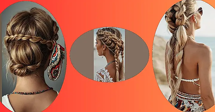 **Paragraph 1:** Wow, check out this awesome hairstyle! It’s like a total hippie vibe meets beach goddess β seriously cool. Those braids are intricate but still look relaxed and effortlessly stylish. Itβs the perfect look for a sunny day at the beach, or maybe even a music festival. Imagine rocking this while listening to your favorite tunes β instant peace and good vibes! It’s way more fun than a plain old ponytail, don’t you think?