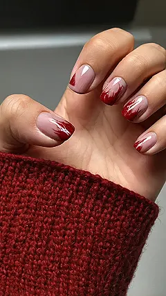 Who said ‘red nail designs’ had to be boring? Check out this awesome manicure that’s totally breaking the mold! You’ve got a super cozy red sweater trying to keep things chill, but these nails are screaming ‘I’m ready for anything!’ With their cool, spiky red tips, it’s like a regular French manicure decided to get a punk rock makeover. Are they tiny flames or maybe just showing off how fierce you are? Either way, they’re definitely a conversation starter!