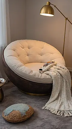 Forget fighting for the best spot on the couch; this giant bowl of comfy is calling your name. That huge, plush seat practically swallows you whole, ready to cradle you like a precious, tired gem. Throw in that ridiculously cozy blanket draped over the side, and you’ve basically built a fortress of solitude where textbooks and chores can’t find you. It looks like the kind of chair that lowers your heart rate just by looking at it.