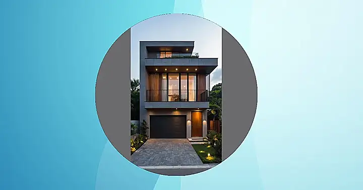 This isn’t just a house; it’s practically a design celebrity showing off its best angles! This super sleek, modern two-story house definitely knows how to make an entrance. With its cool gray exterior and warm wooden accents, it’s got that ‘I’m effortlessly stylish’ vibe that just screams “future goals.” Those glowing lights at dusk? They’re basically saying, “Welcome to the future, where even our driveways look like a red carpet, and every corner is selfie-ready! You can bet your best sneakers this place turns heads!”