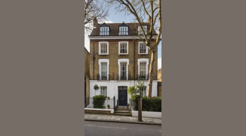 This isn’t just any London house; it’s practically a celebrity in brick and plaster, standing tall with its dazzling white coat like it’s ready for a magazine photoshoot. You can almost hear it whispering tales of tea parties, perhaps a very polite argument or two over who gets the last scone. With those cute dormer windows peeking from the roof, it looks like the house is wearing little hats, probably to keep its historic brain warm from the chilly English weather. And check out those tiny iron balconies – perfect for pretending you’re royalty waving to your subjects, or more realistically, for a couple of very well-behaved potted plants to sunbathe.